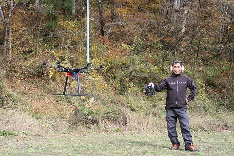 DJI S800マルチコプターのセッティングが完了しフライト説明。今後はマルチコプター特有の耐久儀式を行いビデオマウントを搭載し納品となります。GPS搭載している為、安定感抜群。