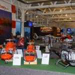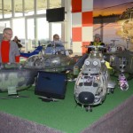 先日、ドイツでのイベントでヘリファクトリー社出展ブースです。最近も新型機種も増えてきて、サイズの種類も変わりつつあります。今は平均2.6m以下程度の機体が主流です。大型機のノウハウはかなり持っている為、安心して飛ばすことができる唯一のメーカーです。