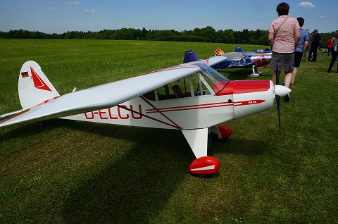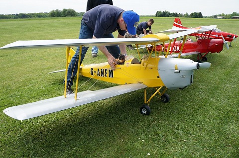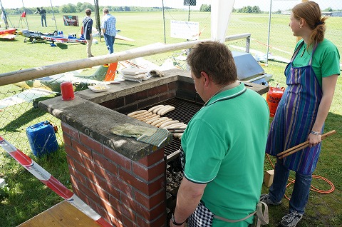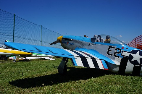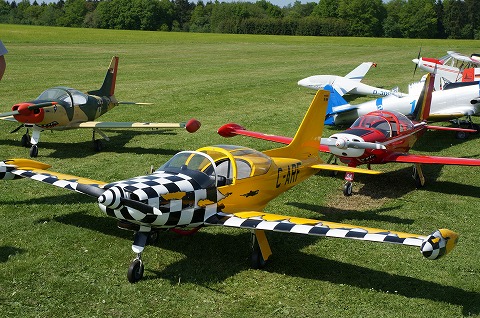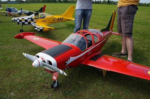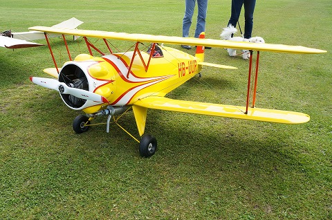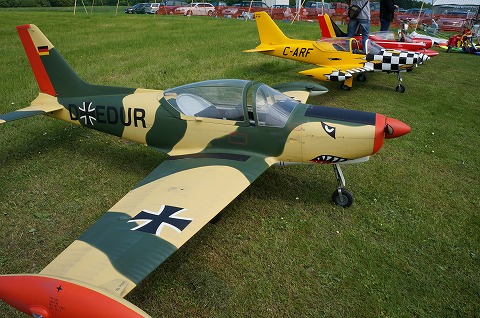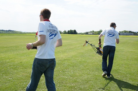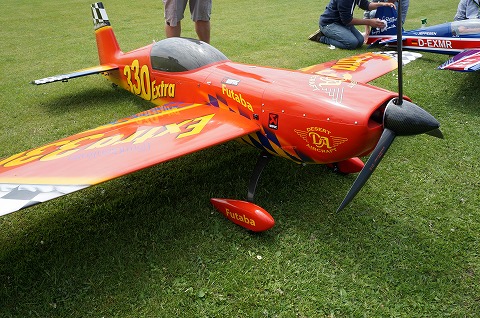 ▼フライヤーのウォルガング氏、かなりの大ベテラン、CARF-MODELSのトーマス氏のとの演技は実機と間違えるほど華麗なフライトでした。