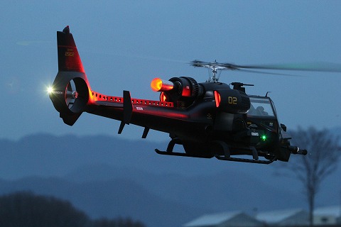 ▼アフターバーナーのLEDはフランス人によって組み込まれました。たかがバーナーと思われるかもしれませんが、ドイツから数百キロ離れたフランス工房までヘリファクトリー社の代表の方が搬送し、3週間預けて再び引取りに。この機体の為だけのLED用のプリント基板を製作しています。その為、見苦しい配線はありません。LEDの数も多い為、専用のLEDコントローラー2台、4000mAhのバッテリーは独立していますので、発火、ショートなどのトラブルリスクは軽減されています。ラジコン機では、電気トラブルが発生するとコントロールが不能になる可能性があります。弊社では電子回路設計を行ってきた経験上、大型機では絶対にトラブルを起こさせないためにも最大限の配慮を行っています。素人による配線、判断ミスの部材選定は一時的に問題なく飛んでいても、何時どのような原因で問題が起きるかわかりません。確実に計算されたシステムでフライトすることが無意味に墜落をさえなくて済む判断にもなります。決してこのシステムが高価と言うことではなく、保険として考え安価なシステムで済むように弊社では行っております。
