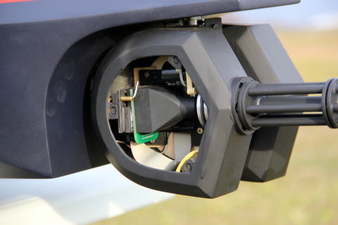 ▼火薬ユニットは1ユニット29発(緑の基盤)がモールドされており、発火と共にガトリングが回転します。威力があるために発火部分は全てメタル、ガトリングもメタルで作られています。コントローラーBOXはコクピットに取り付けています。火薬搭載により、日本で認可を得るために今も手続き中です。担当者の話では問題なく認証してもらえそうです。