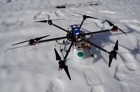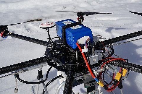 無人農薬散布機ユニットの改良テスト